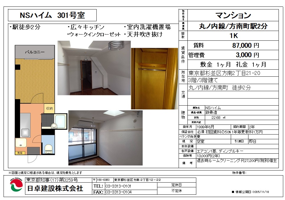 | 所在地 | 東京都杉並区方南2丁目 NSハイム |